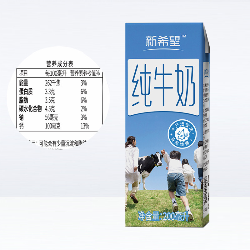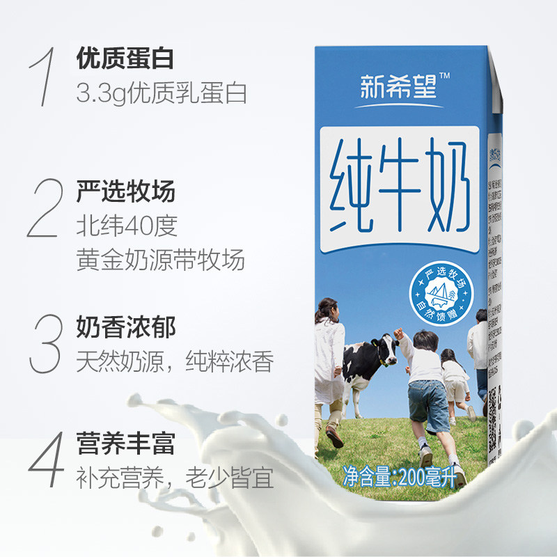 新希望整箱纯牛奶200ml×24盒