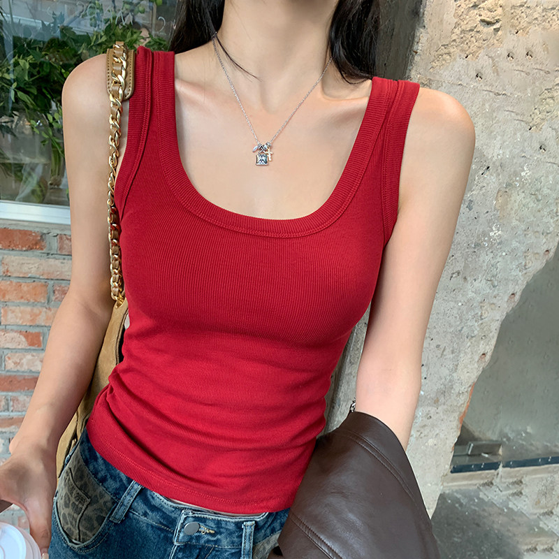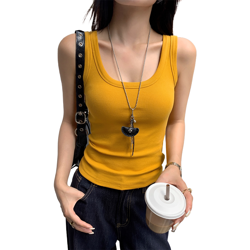 龙妹黄色工字吊带背心女内搭外穿春夏新款遮副乳打底绝美无袖上衣