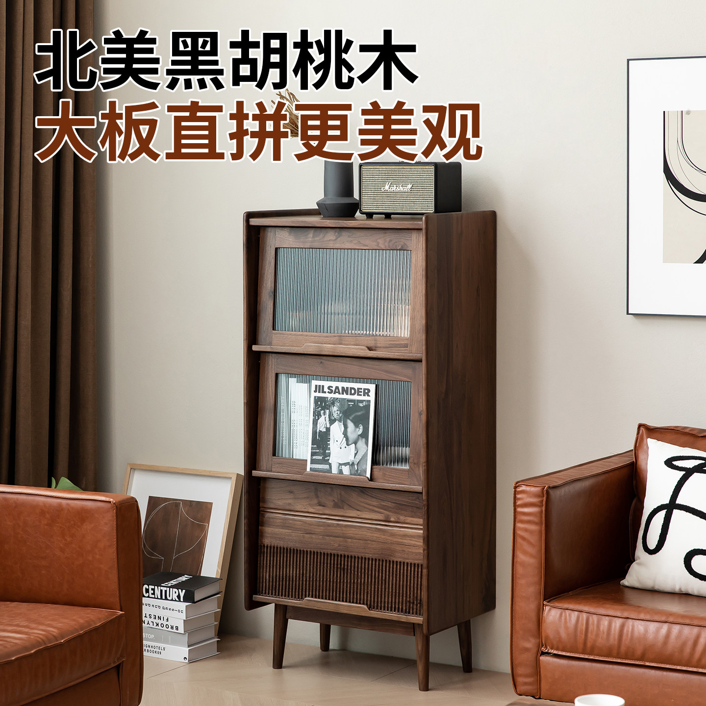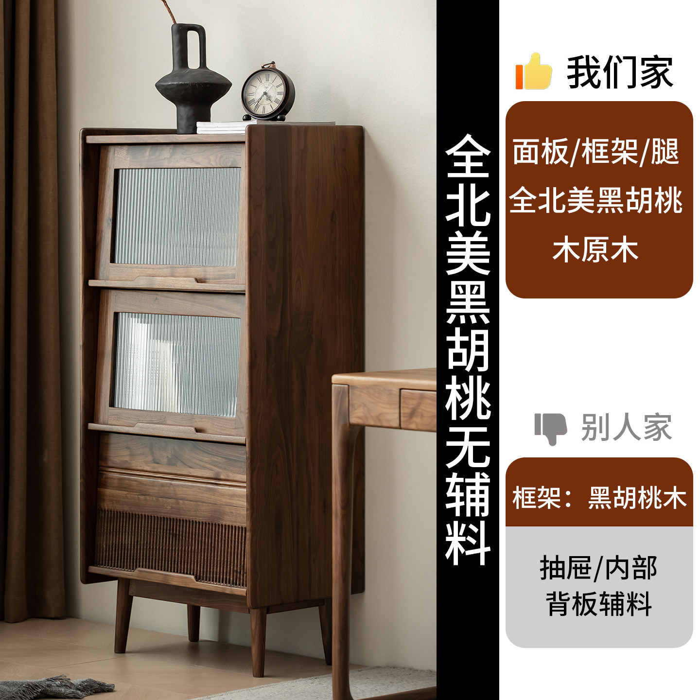北美黑胡桃实木书柜北欧书架小户型餐边柜储物柜沙发旁边的边柜
