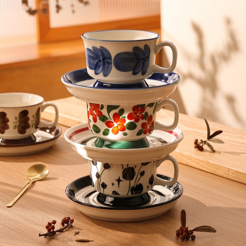 芬兰女士精致咖啡杯设计感小众陶瓷杯碟套装下午茶网红复古咖啡杯