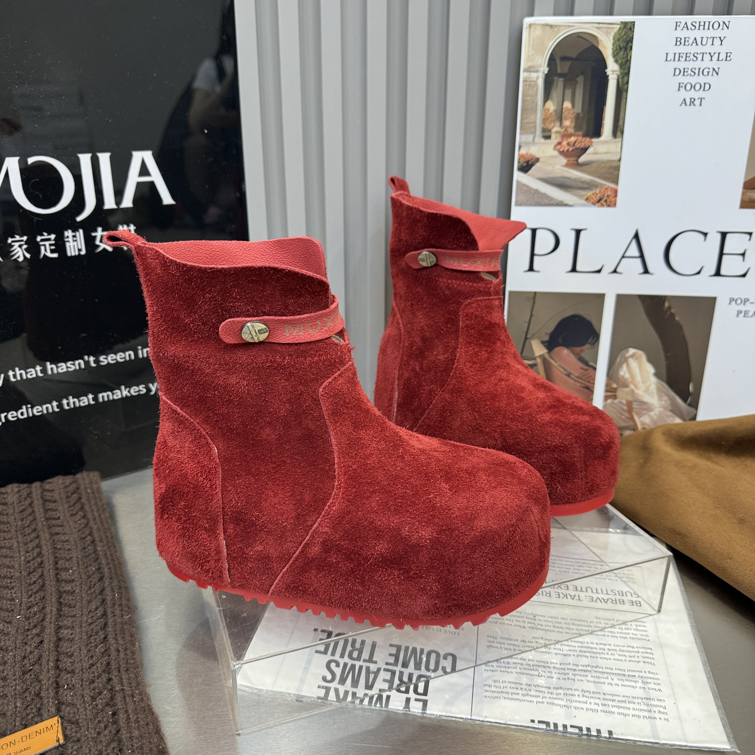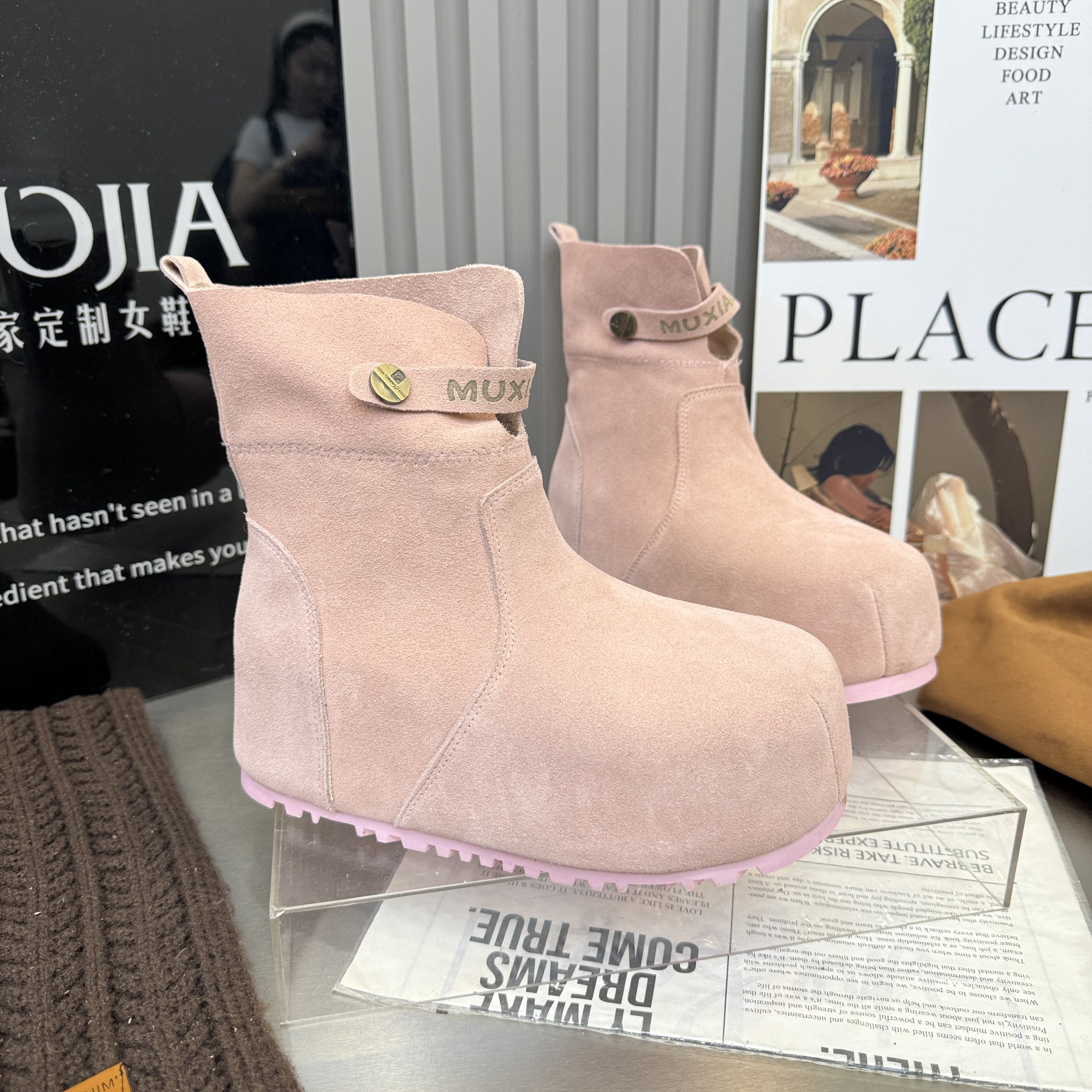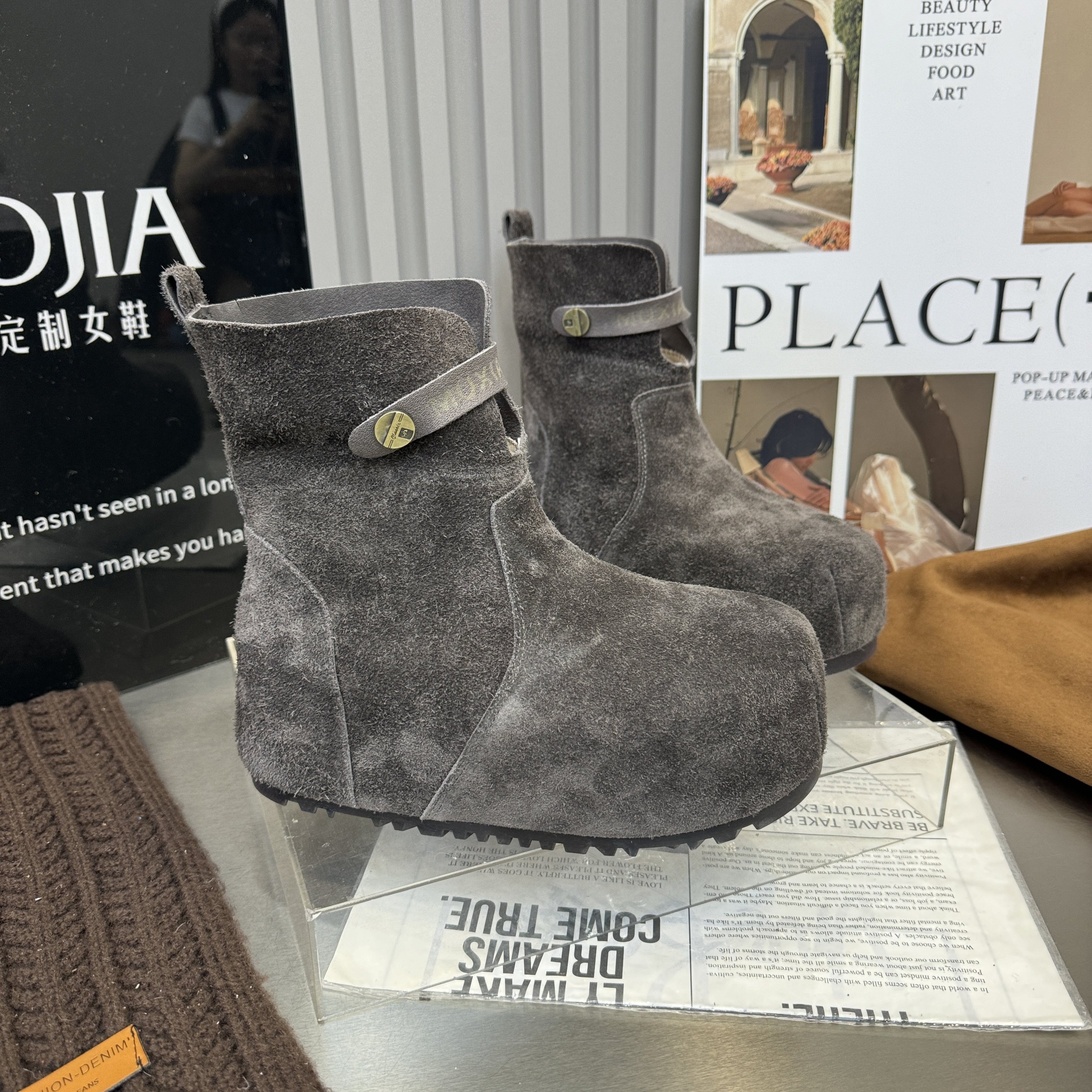 2026春季新款磨砂真皮纯皮厚底内增高勃肯鞋百搭休闲女鞋马丁短靴