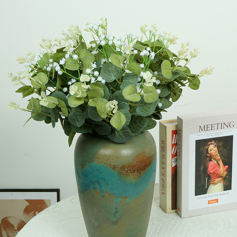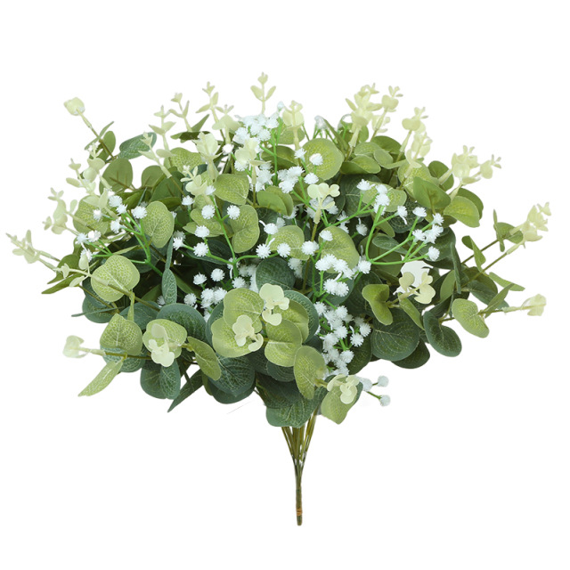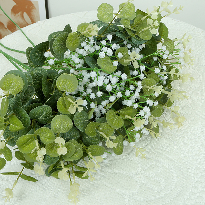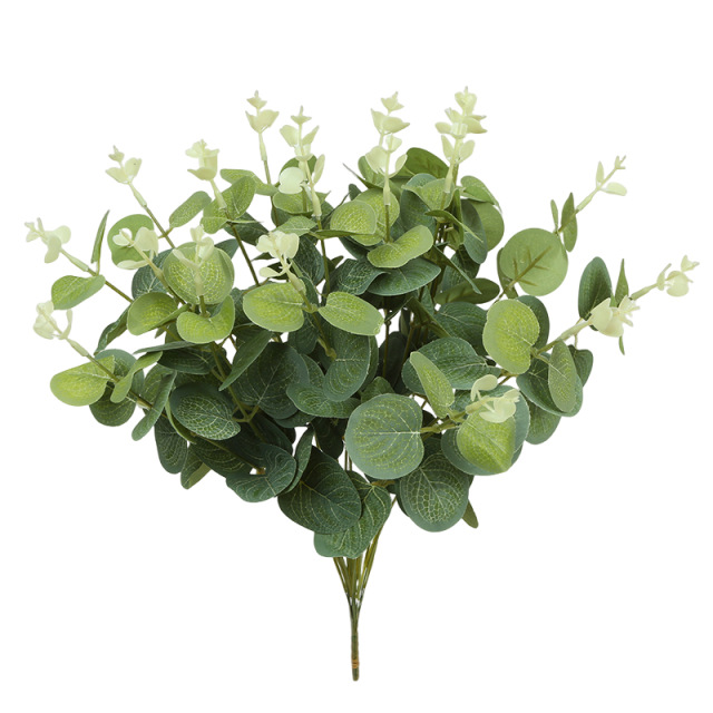 假花人造花插花绿植配件尤加利叶子 北欧仿真单支金钱叶