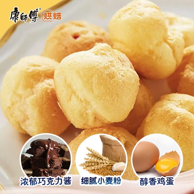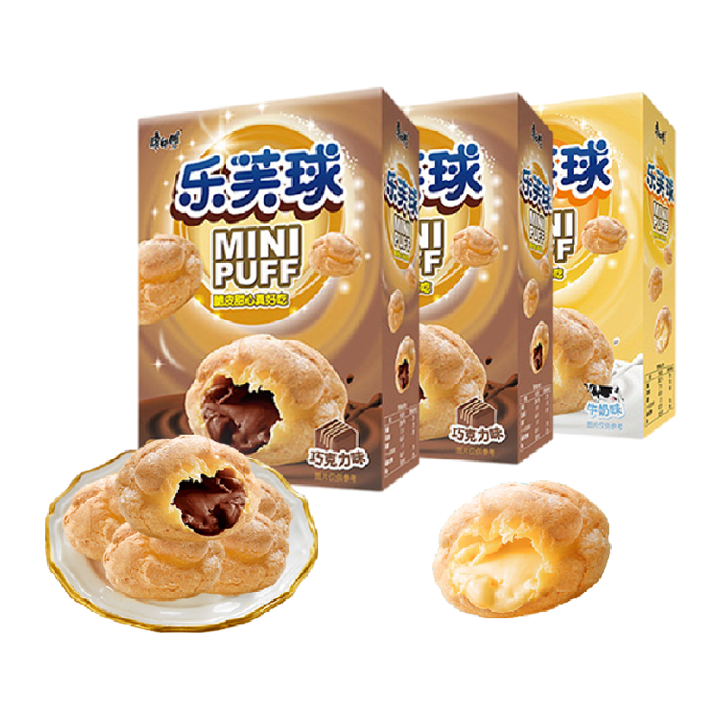 康师傅3+2泡芙乐芙球巧克力味+奶油味50g*3休闲追剧童年零食