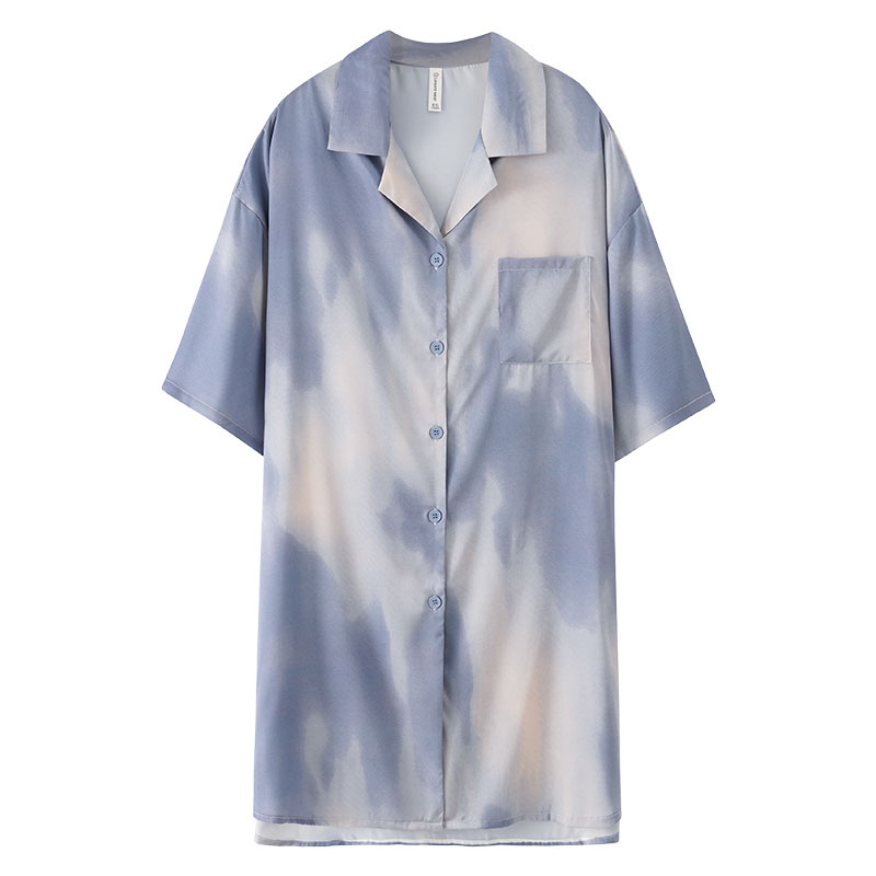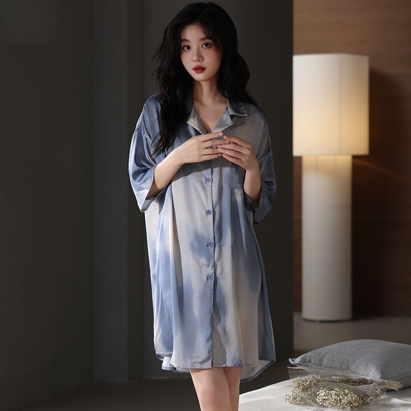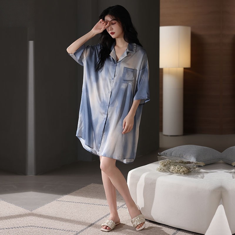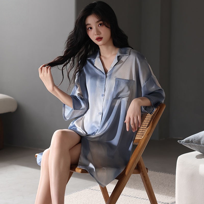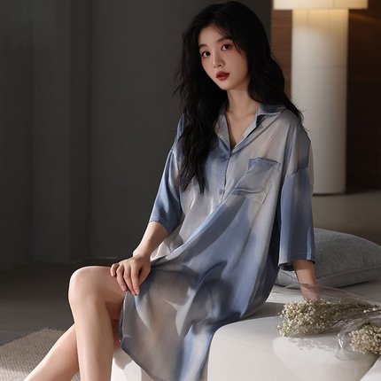 维多利亚夏季短袖桑蚕丝衬衫睡裙性感睡衣女夏天薄款高级感家居服