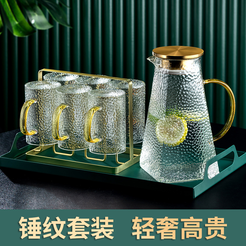锤纹玻璃杯带把水杯茶杯高级感喝水杯子轻奢家用客厅水具家庭套装