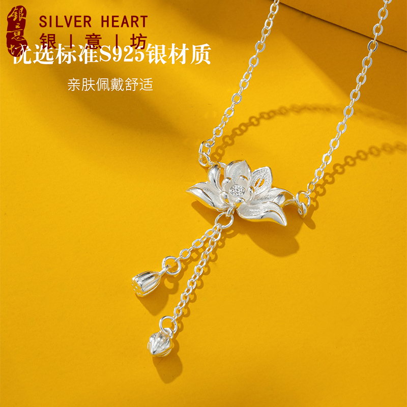 新中式国风项链女款2025新款S925两世欢莲花银项链锁骨链生日礼物