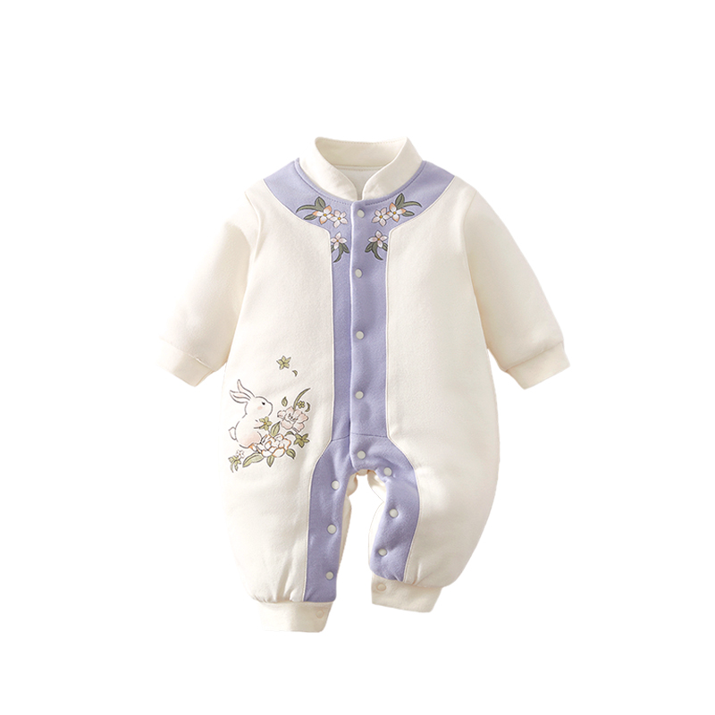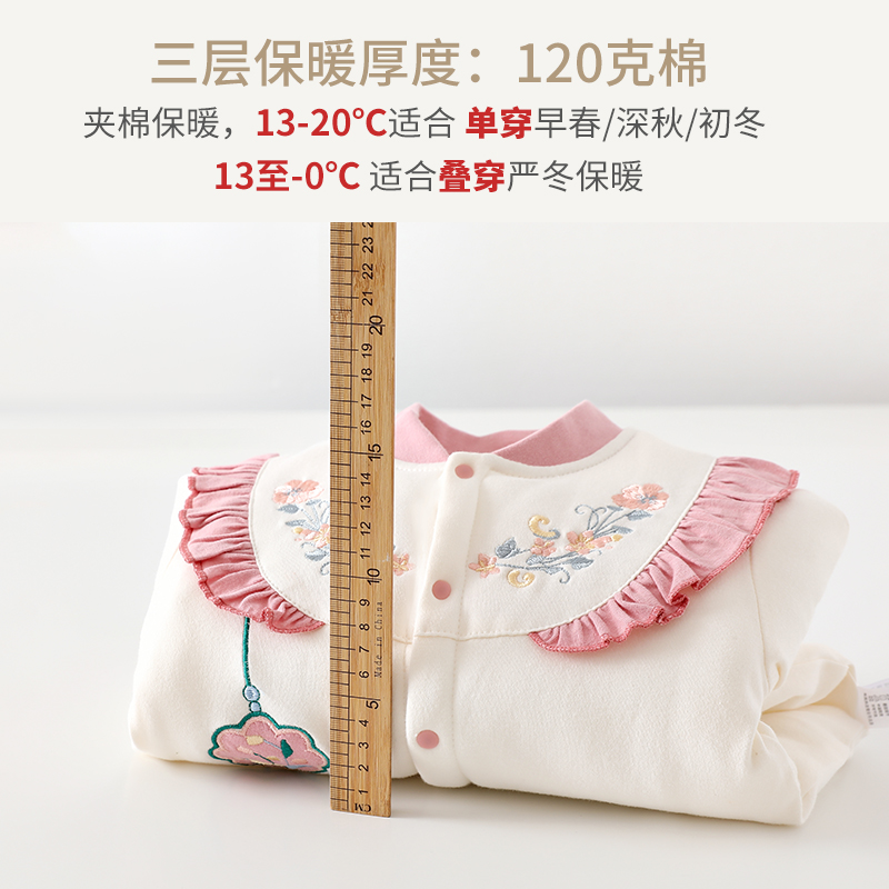 婴儿连体衣秋冬季夹棉加厚保暖套装国风款纯棉新生儿女宝宝衣服冬