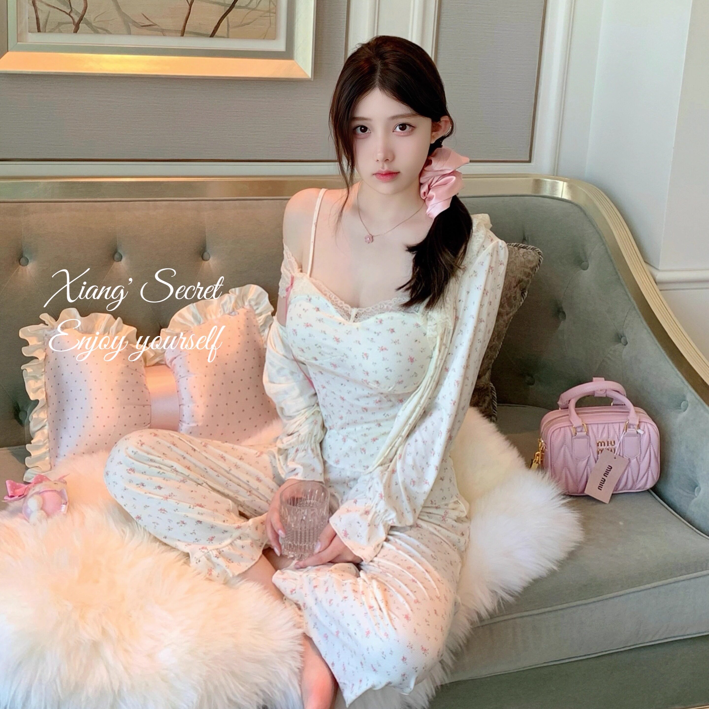 香香的秘密 清纯碎花*莫代尔纯欲芭蕾家居服舒适春夏睡衣吊带套装