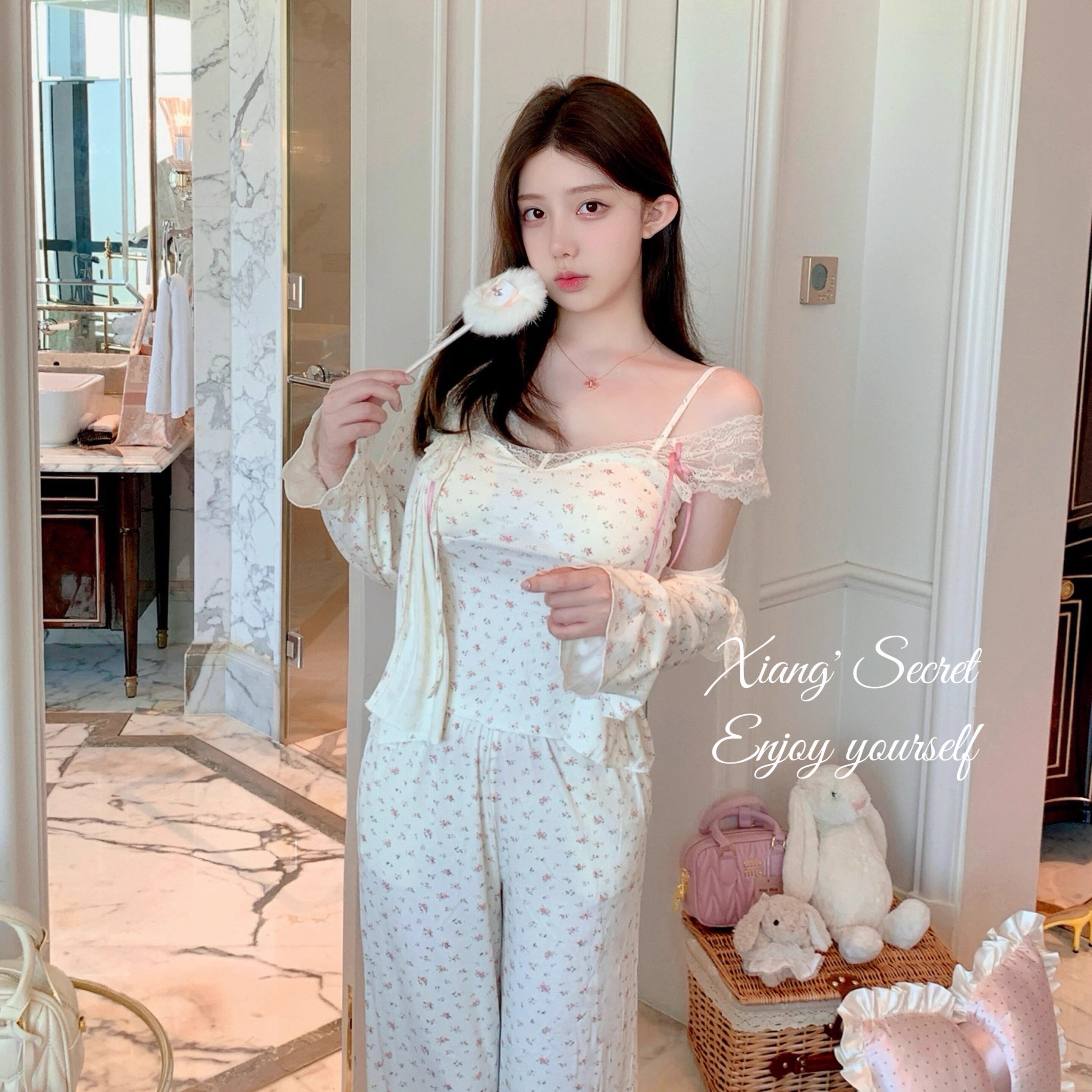 女莫代尔睡衣三件套带胸垫舒适