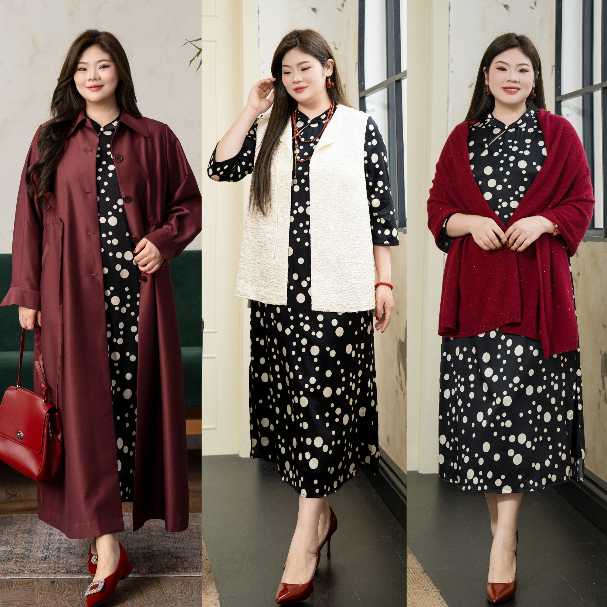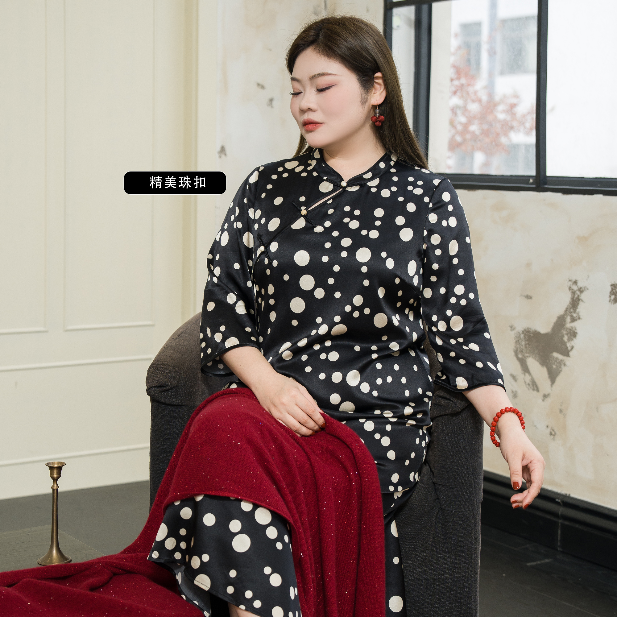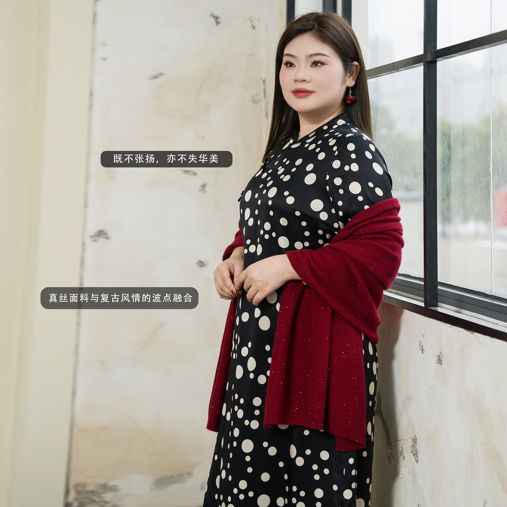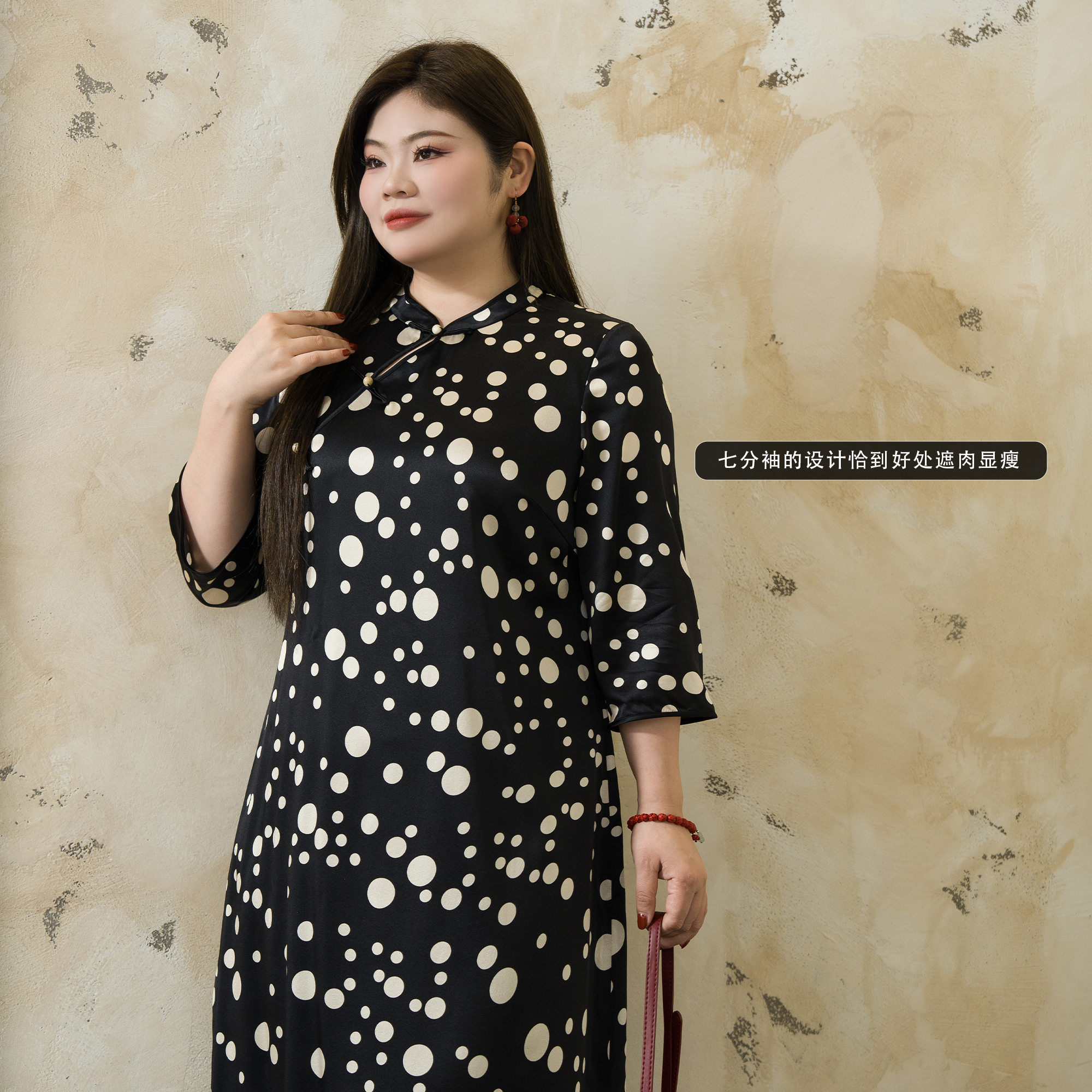 【抑菌】美丽客栈桑蚕丝波点立领改良旗袍连衣裙原创高端大码女装