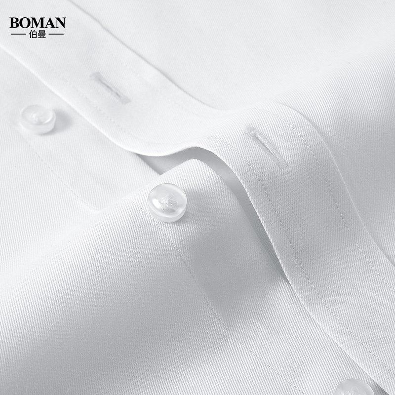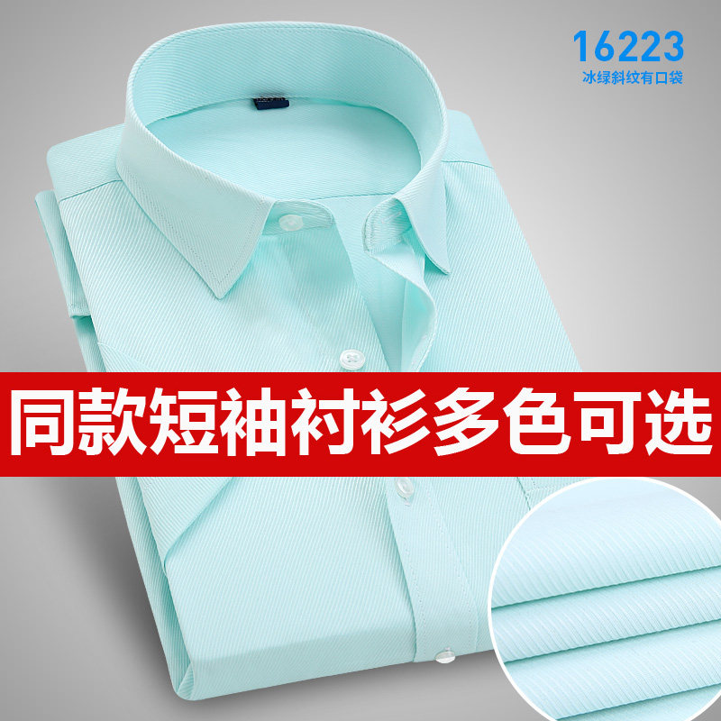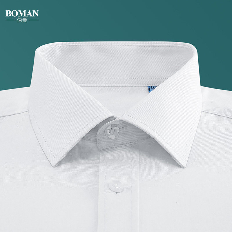 2020伯曼夏季短袖衬衫男青年商务职业工装冰绿长袖白衬衣正装修身