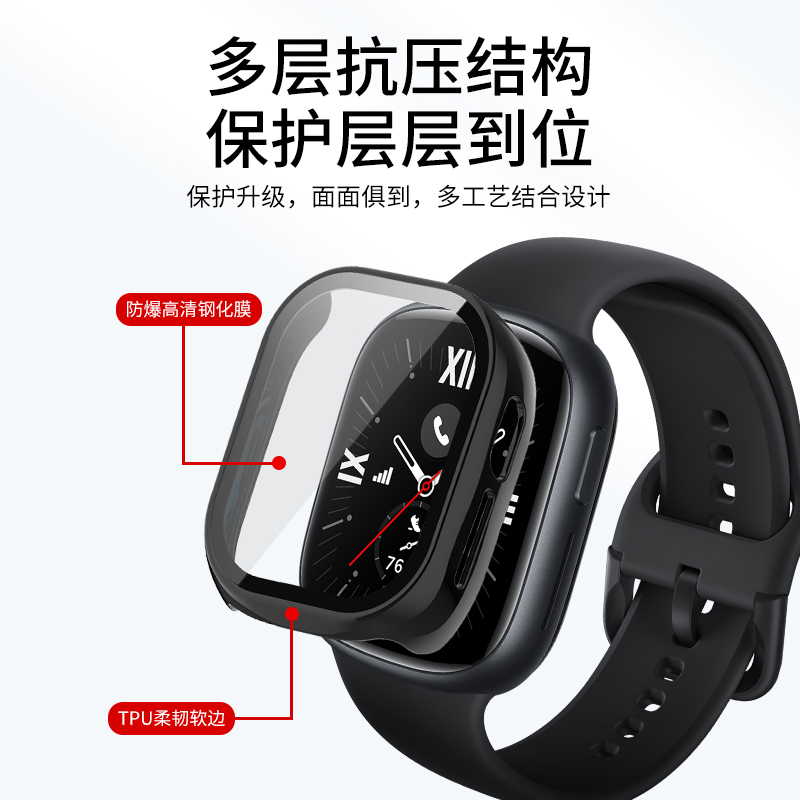 适用于荣耀手表4保护壳壳膜一体保护壳荣耀watch4高清防摔全包保护套钢化膜防爆智能运动贴膜Honor手表四配件