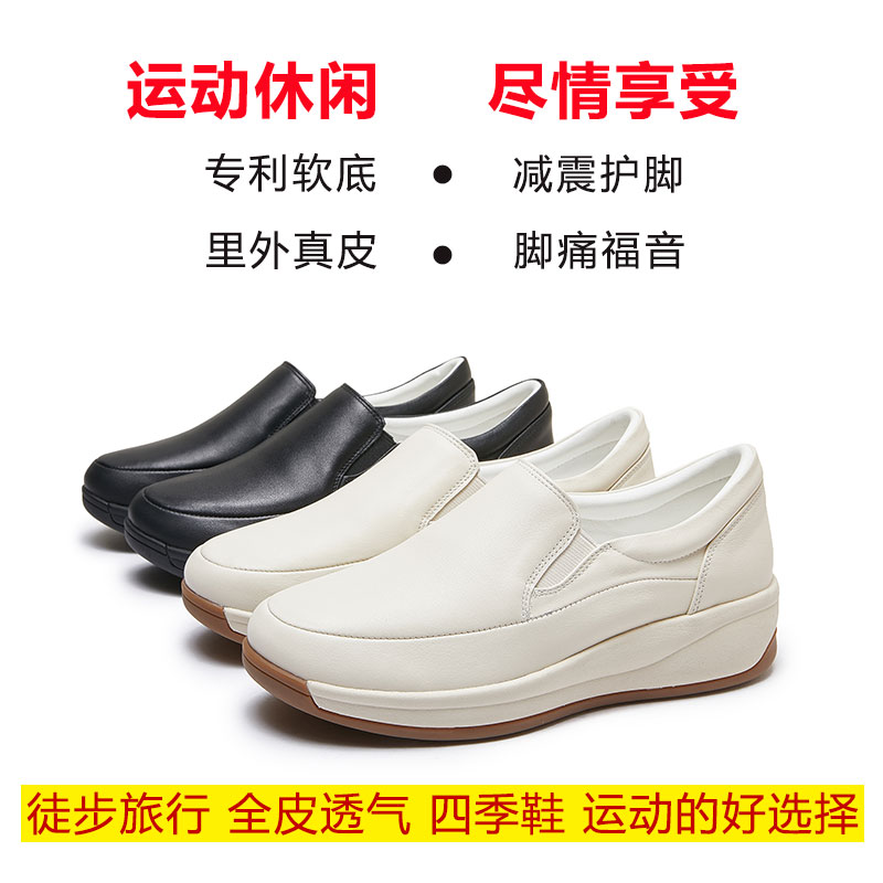 妈妈鞋头层牛皮羊皮舒适健步鞋