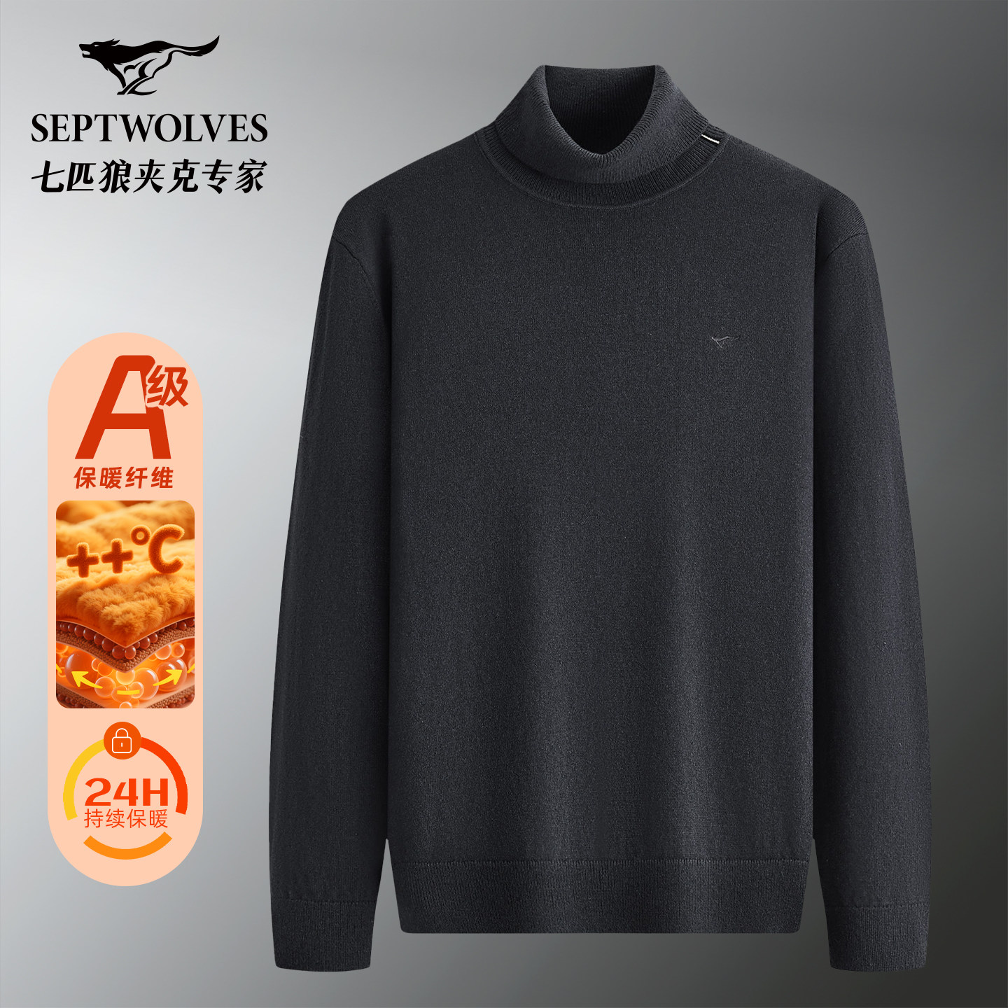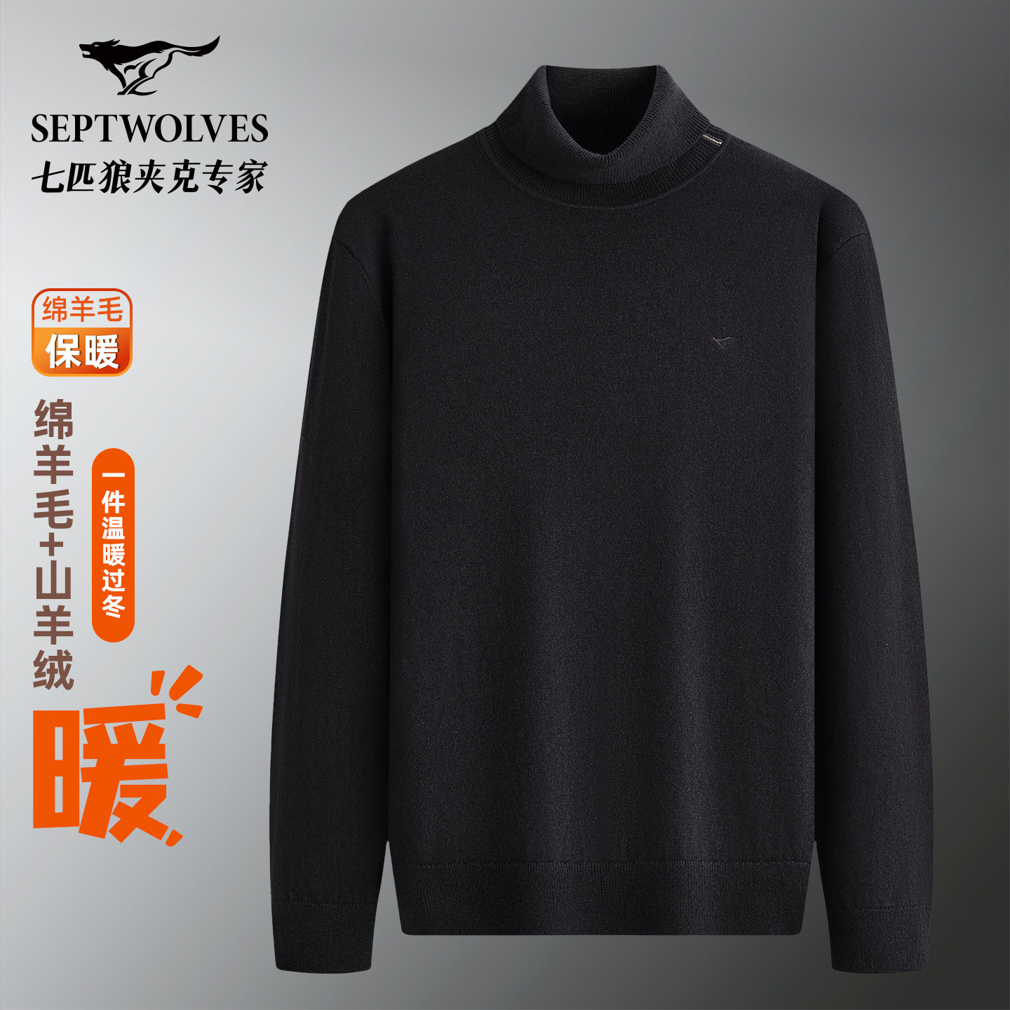 七匹狼高领羊绒厚款毛衫男冬季保暖打底毛衣男装商务纯色针织衫男