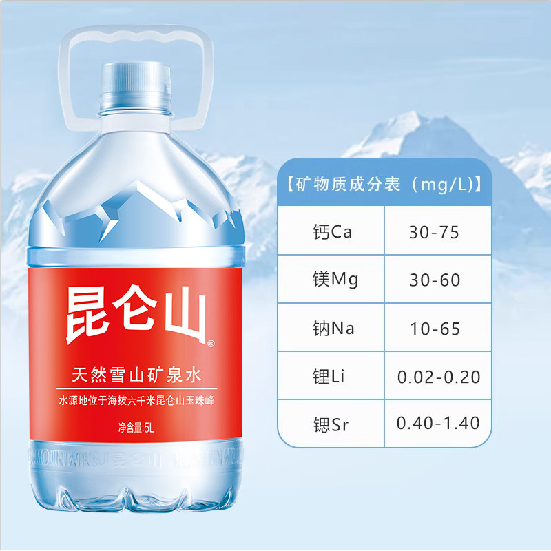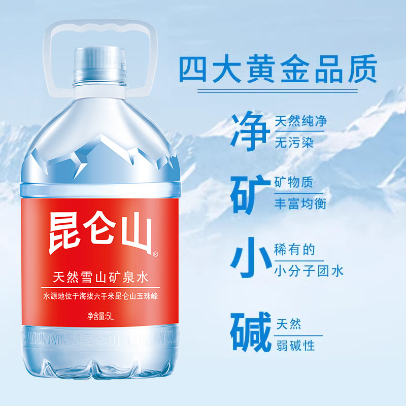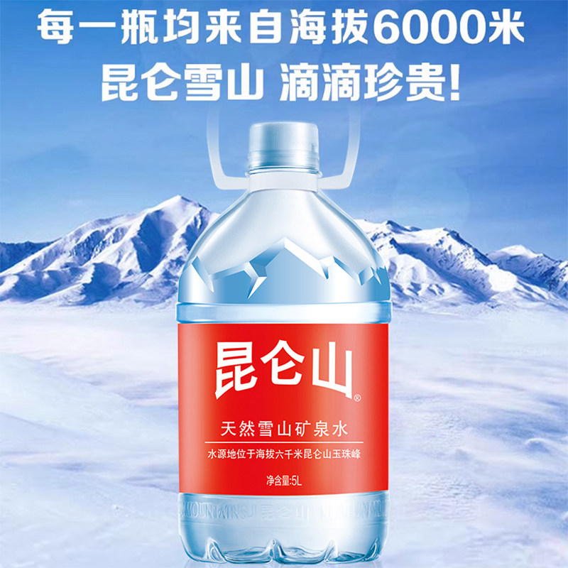 昆仑山饮用天然矿泉水高端雪山水5Lx2瓶弱碱性品质好水整箱