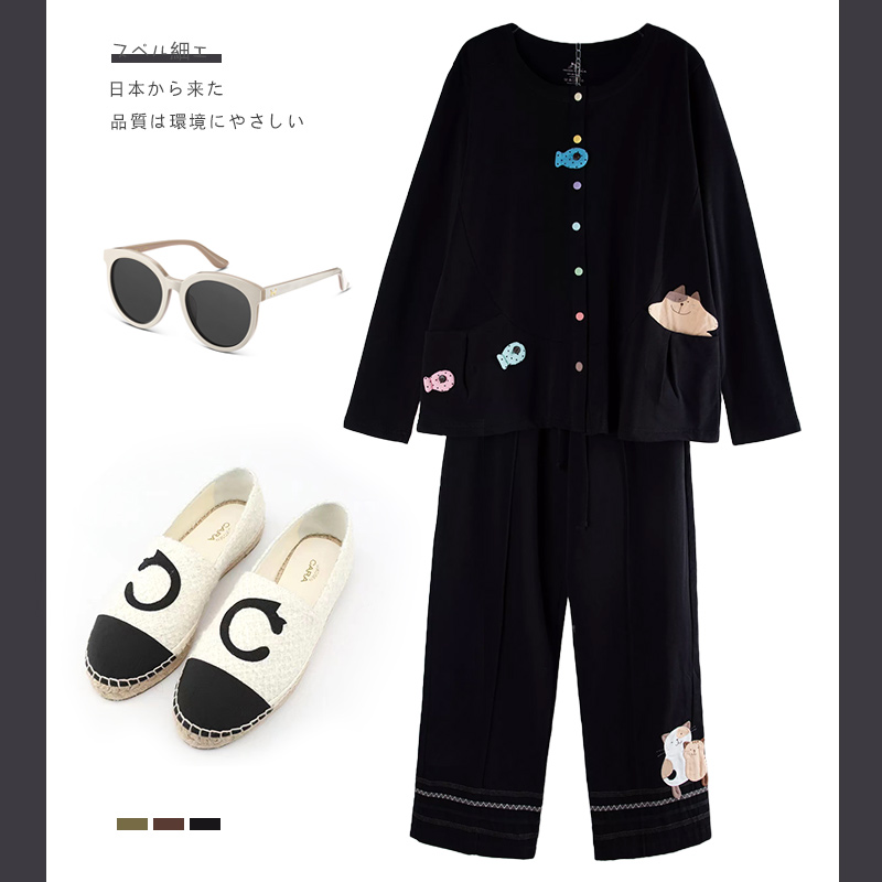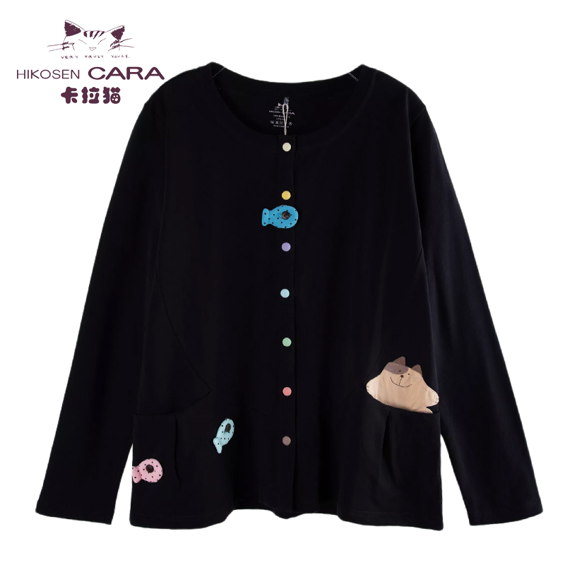 HIKOSEN CARA卡拉猫长袖家居衬衫可爱猫咪棉质卡通保暖女士上衣