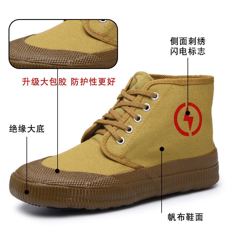 5kv电工绝缘鞋劳保鞋高帮帆布面透气防滑男女电力高压黄胶解放鞋