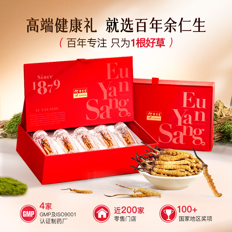 余仁生冬虫夏草礼盒35#10g正品干货虫草礼盒送礼官方旗舰店高腺苷