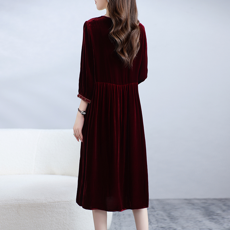 婚宴真丝丝绒连衣裙女喜婆婆桑蚕丝裙子收腰妈妈装刺绣气质春秋