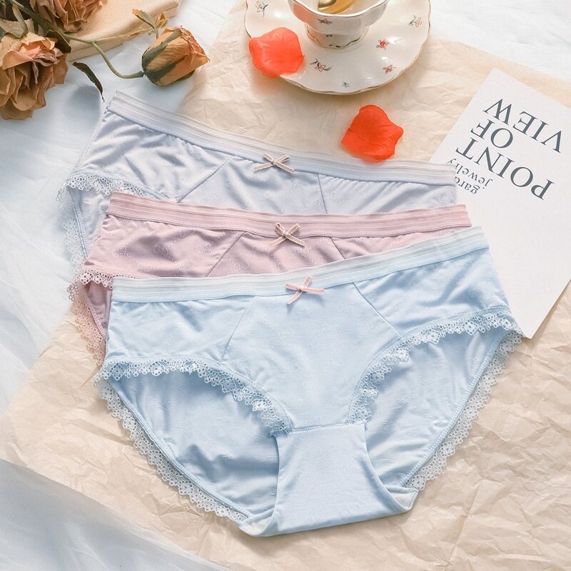 莫代尔女士内裤女全纯棉裆蕾丝少女生低腰冰丝夏季薄款透气短裤头