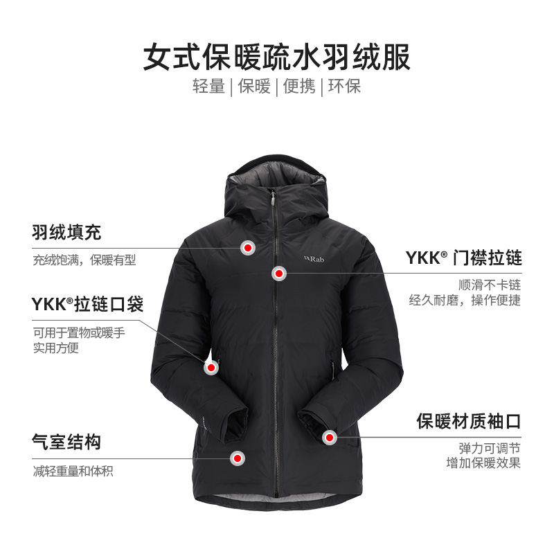 RAB睿坡Valiance女士防泼水700蓬保暖连帽外套防撕裂羽绒服QDB-50