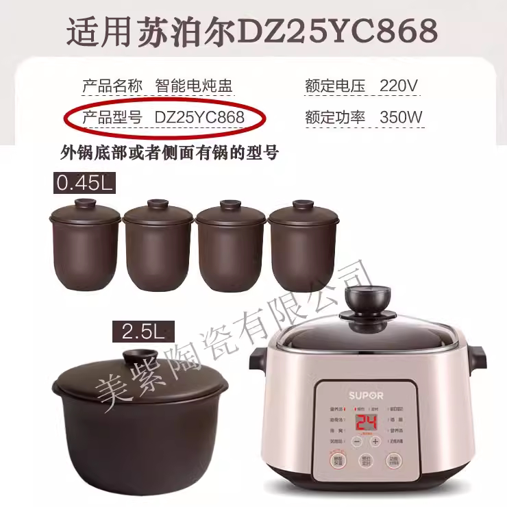适用苏泊尔电炖锅DZ25YC868/DZ18YC610黑紫砂012.458L小炖盅胆盖