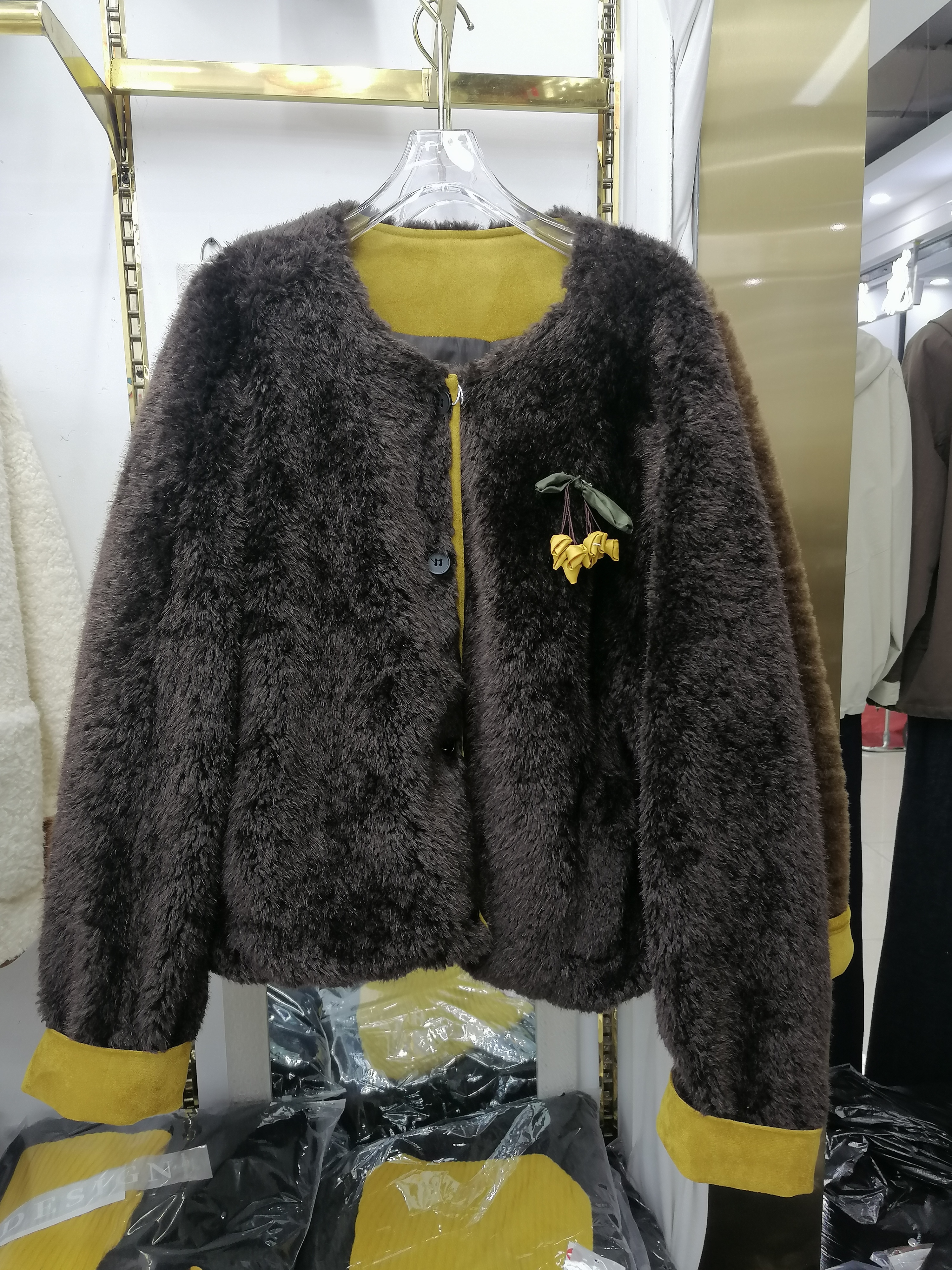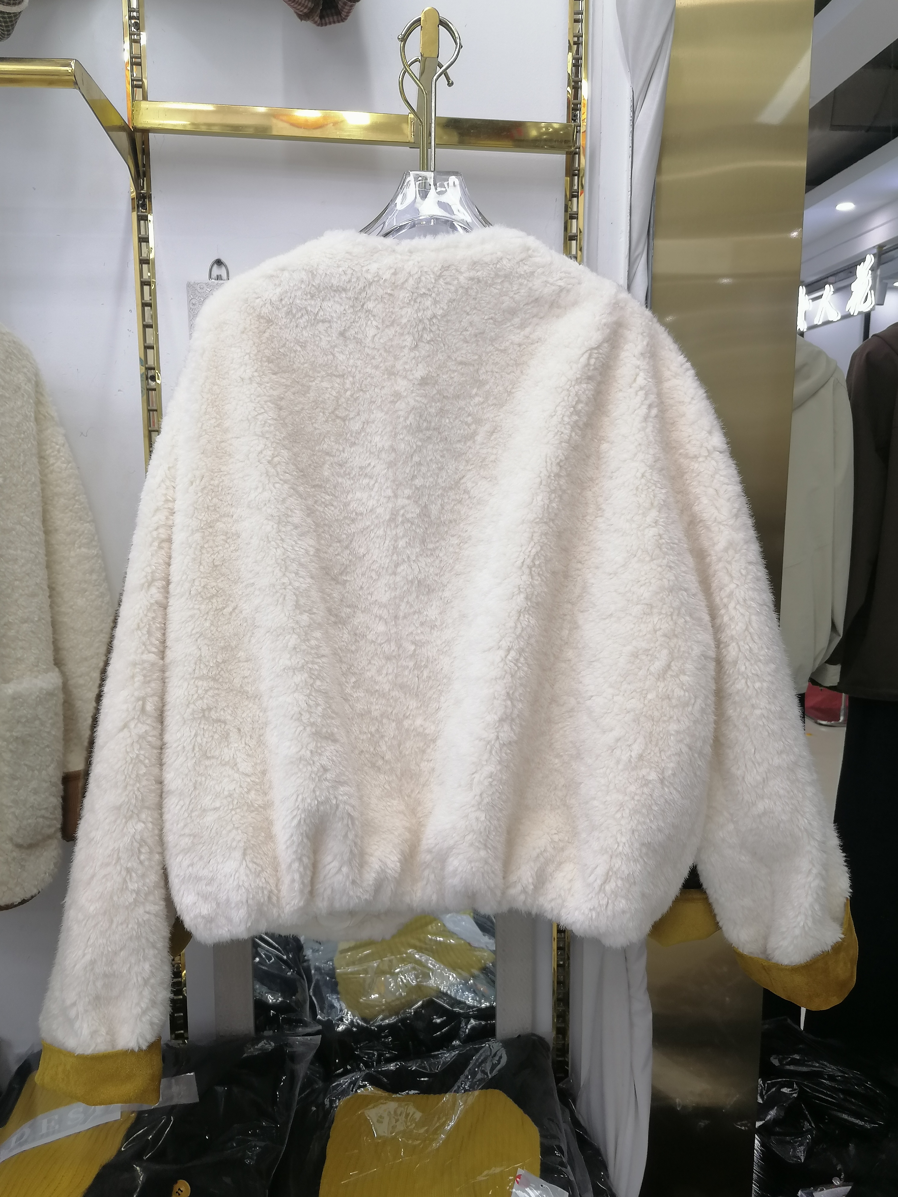 2025秋冬欧韩休闲毛毛短外套女圆领宽松百搭小个子羊羔毛夹克上衣