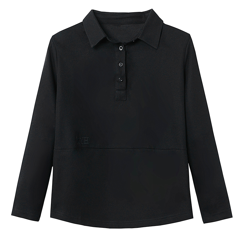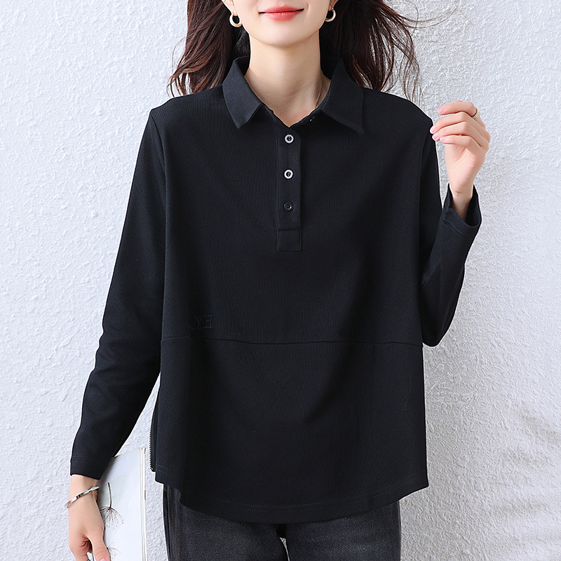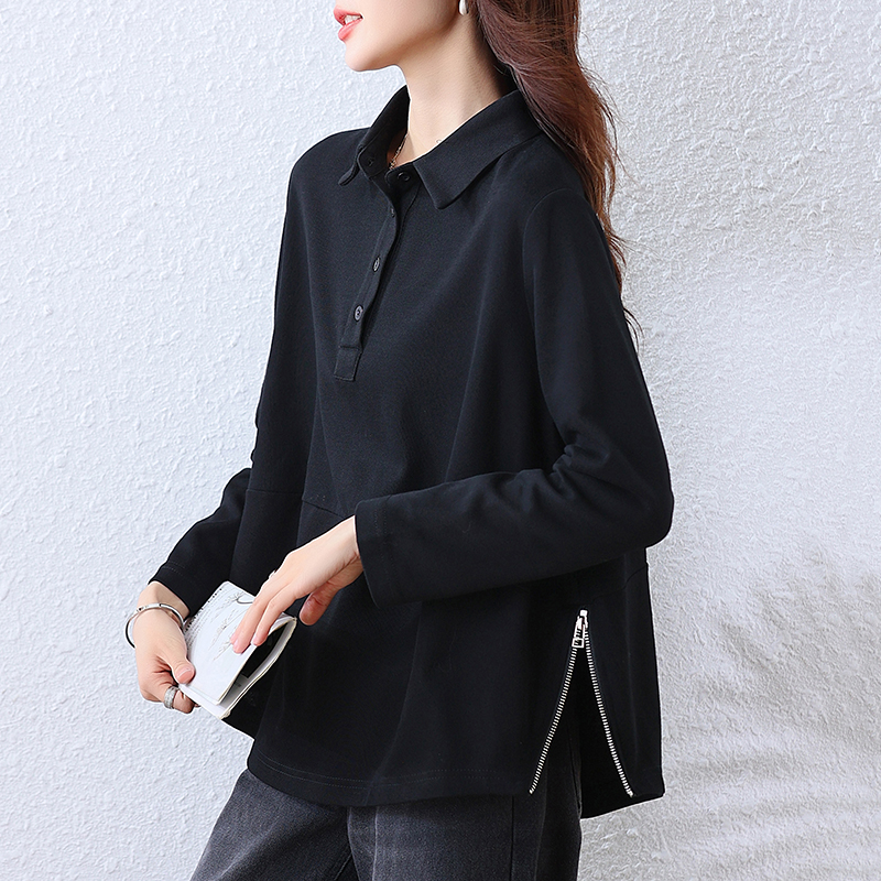 九月陌墨黑色POLO领卫衣女秋季新款洋气时尚拉链开叉宽松别致上衣
