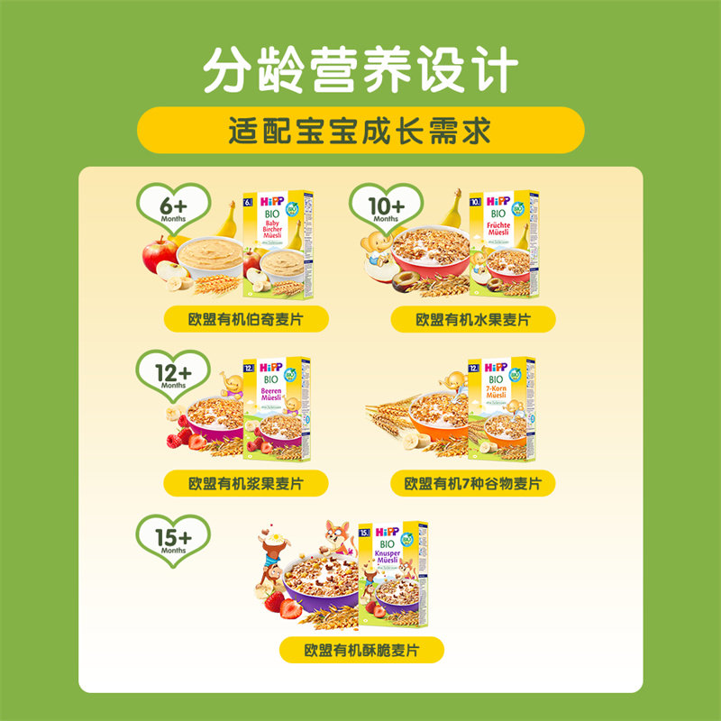 HiPP喜宝 欧盟有机婴幼儿伯奇麦片宝宝辅食米粉米糊250g/盒
