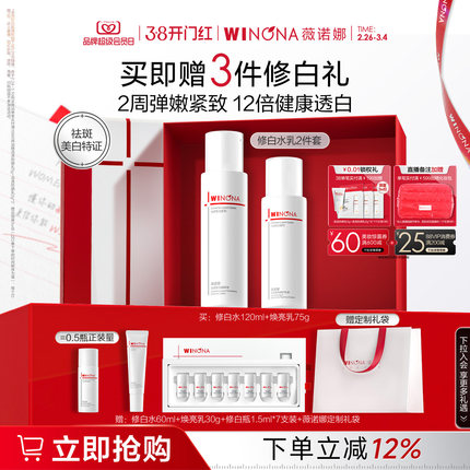【38现货速发】薇诺娜修白水乳套装淡化痘印祛斑美白提亮精华护肤