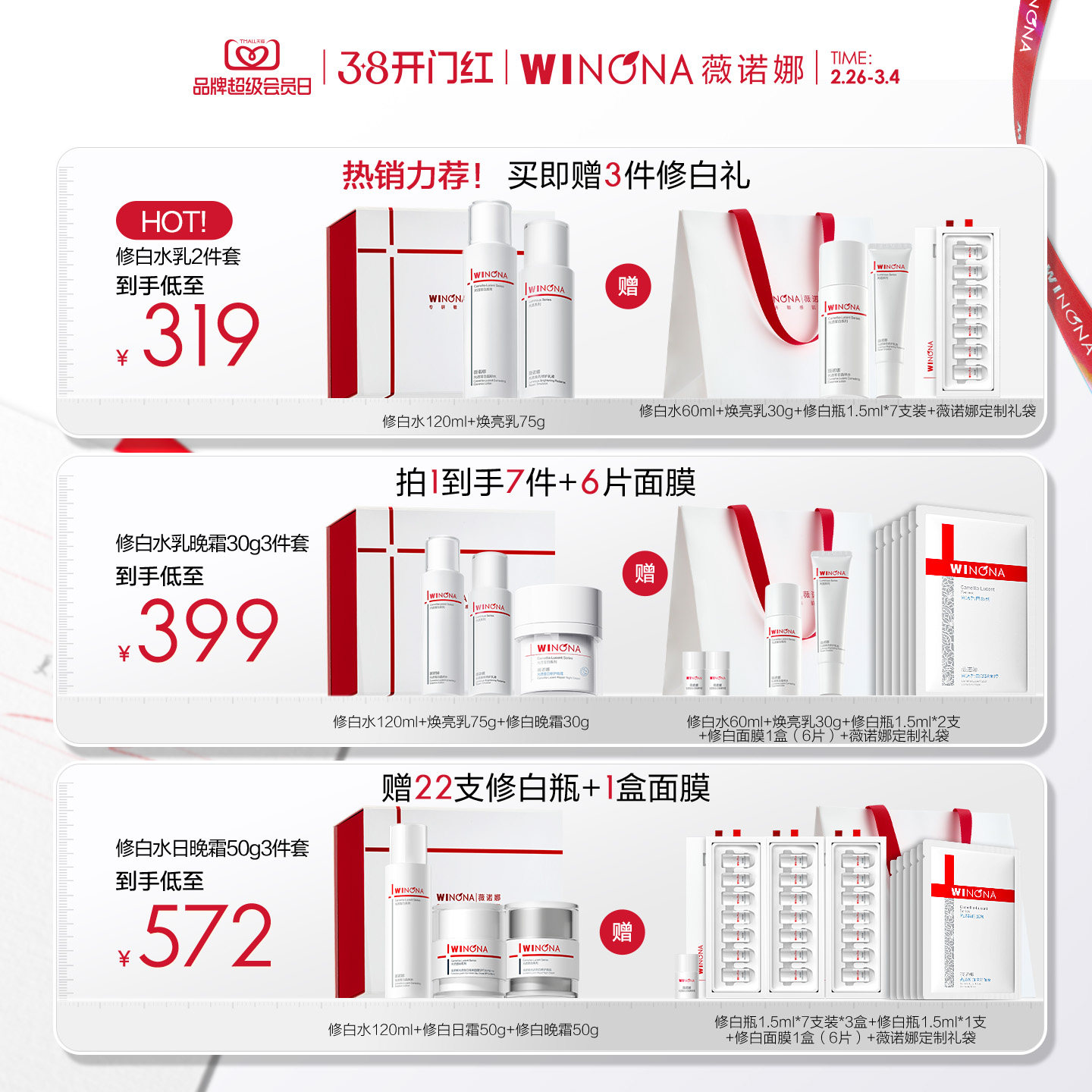 薇诺娜光透皙白套装敏肌美白淡斑