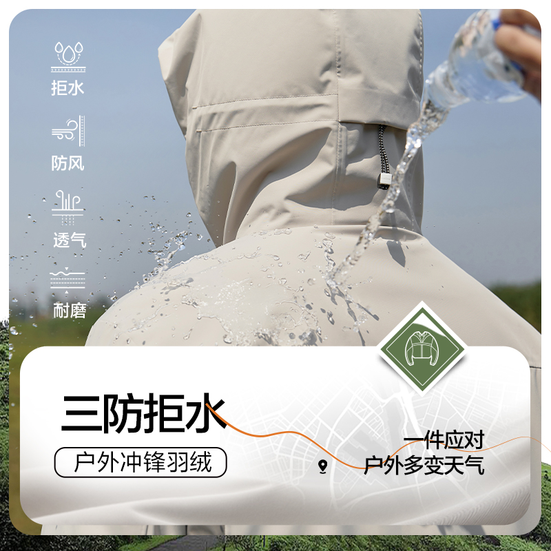 【拒水羽绒】柒牌连帽羽绒服男一衣三穿可脱卸内胆保暖户外外套男
