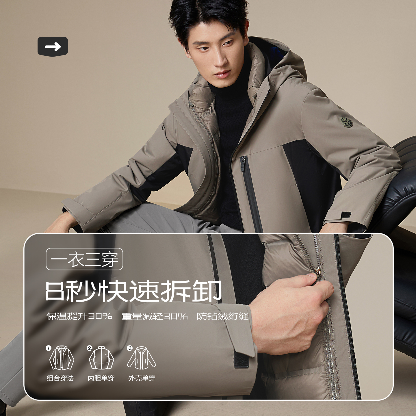 柒牌一衣三穿可脱卸内胆羽绒服男