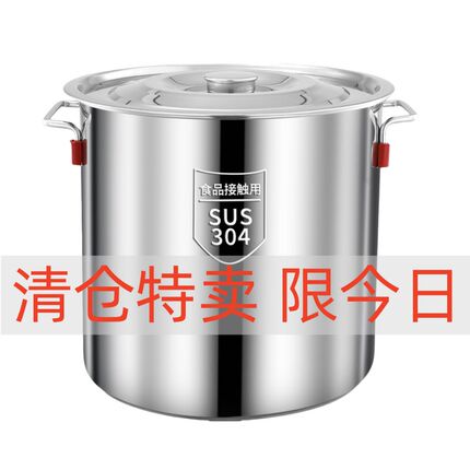 304商用不锈钢桶带盖不锈钢汤桶加厚加深大汤锅大容量储水桶圆桶