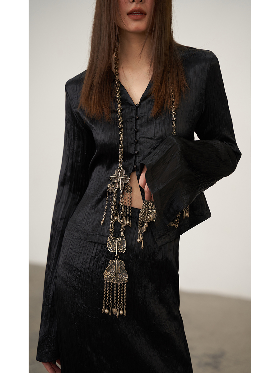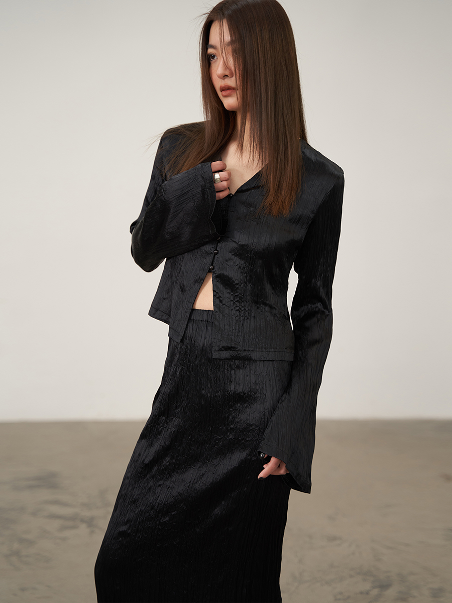 洛边 高品质醋酸!两件套套装修身显瘦纯色v领衬衣衬衫半身裙女