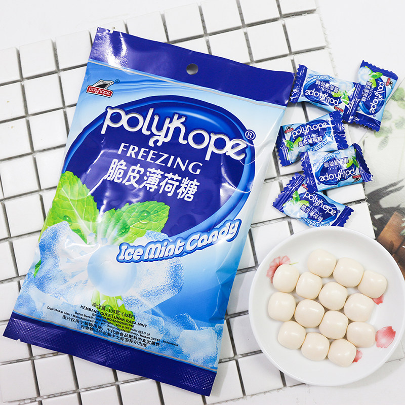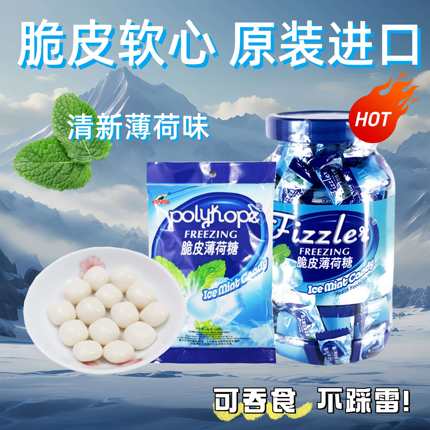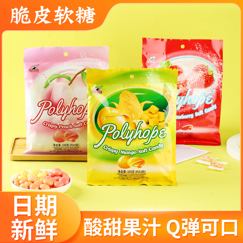 舶来鸿印尼进口脆皮水果味薄荷糖芒果草莓白桃水果软糖休闲糖果