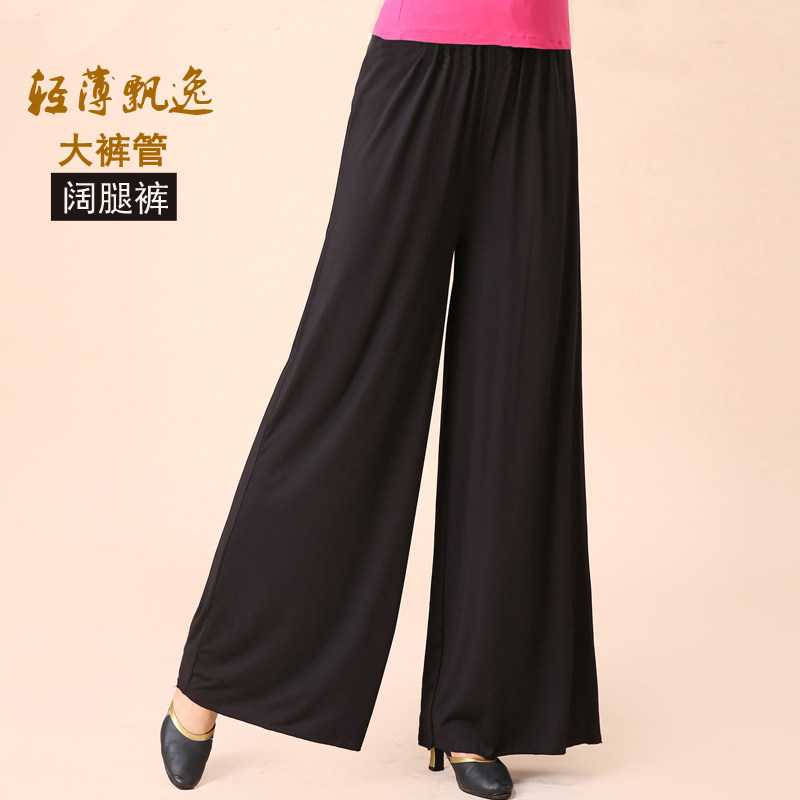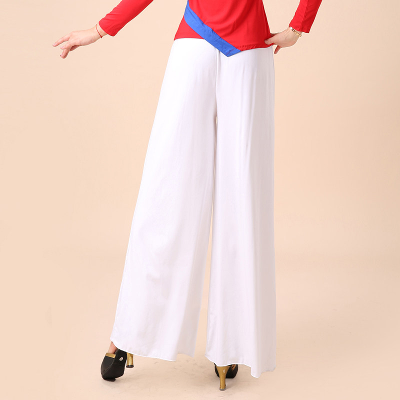 花竹蝶2025广场舞阔腿裤新款牛奶丝拉丁舞蹈裤跳舞表演喇叭裤高腰