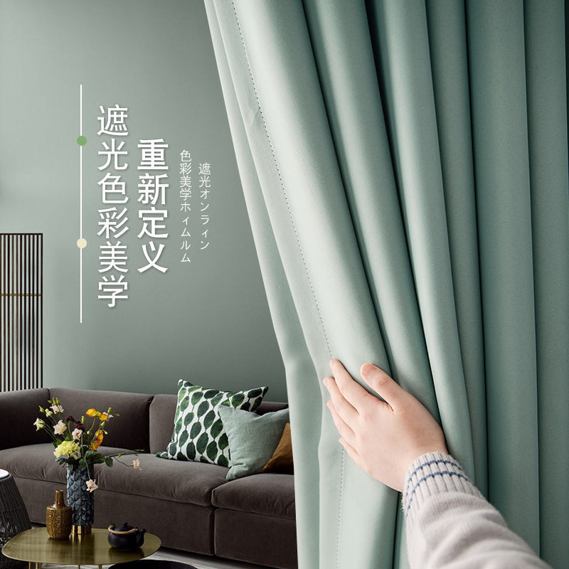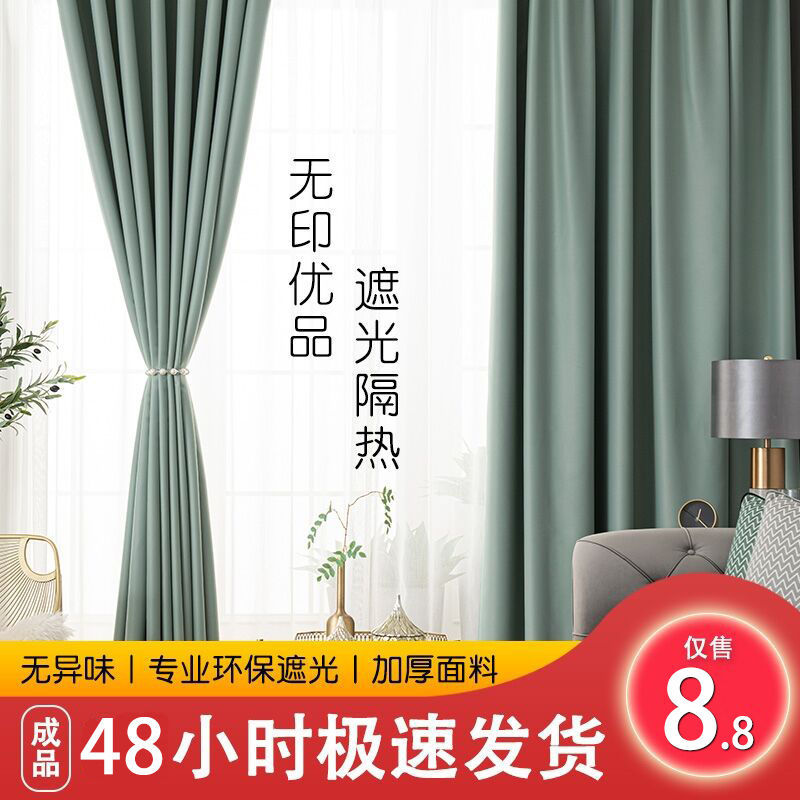 窗帘遮光卧室北欧简约挂钩式遮阳免打孔安装全窗帘布2019新款100