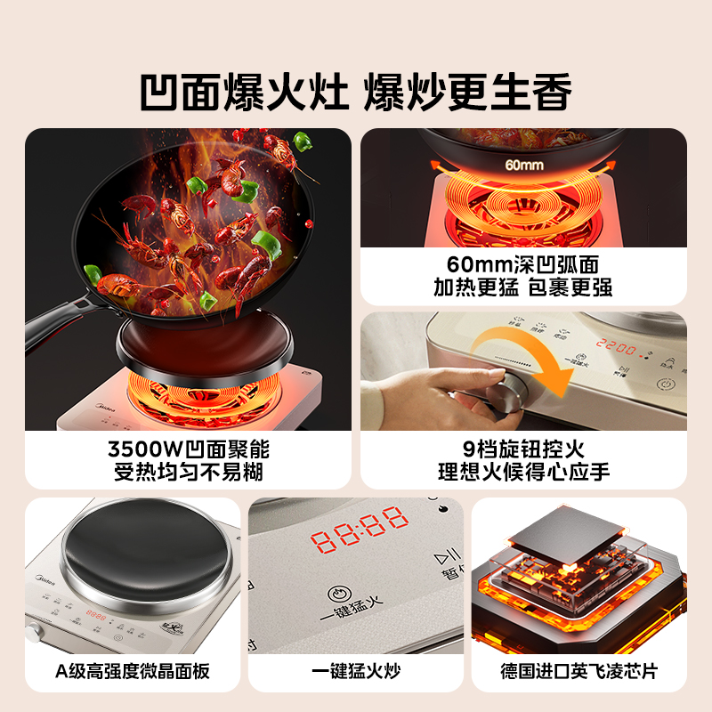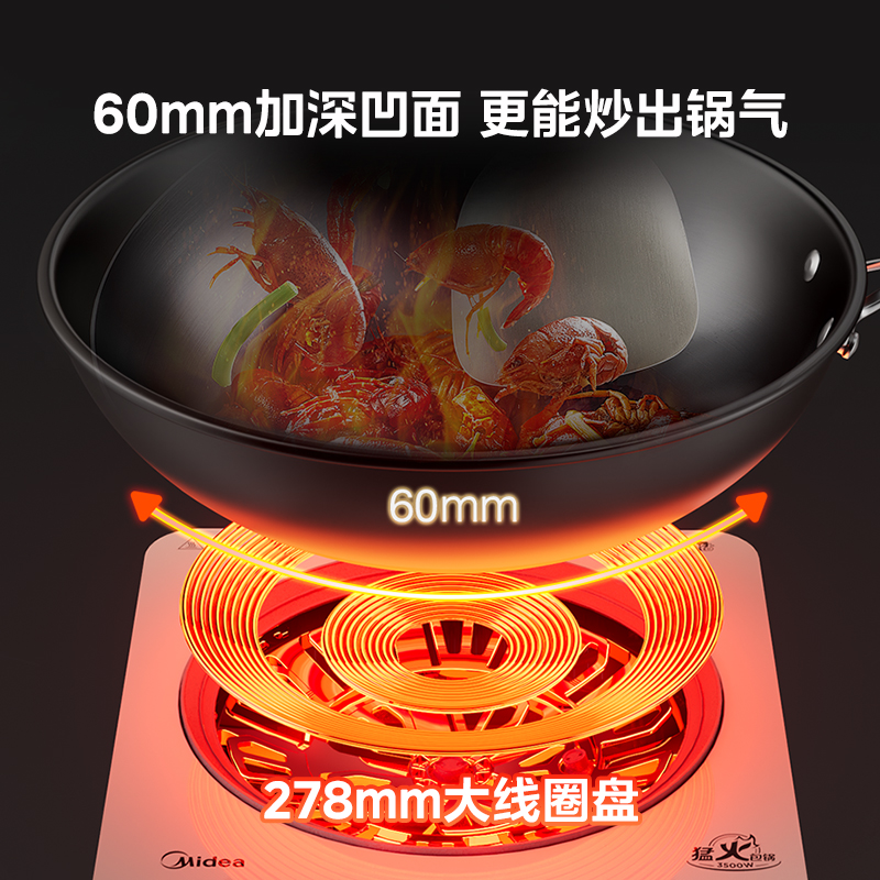 美的凹面家用电磁炉3500W炒菜锅一体全套爆炒火锅大功率猛火磁灶