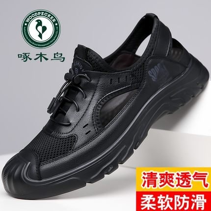 啄木鸟男鞋户外休闲夏季凉鞋男真皮透气镂空洞洞鞋防滑软底爸爸鞋