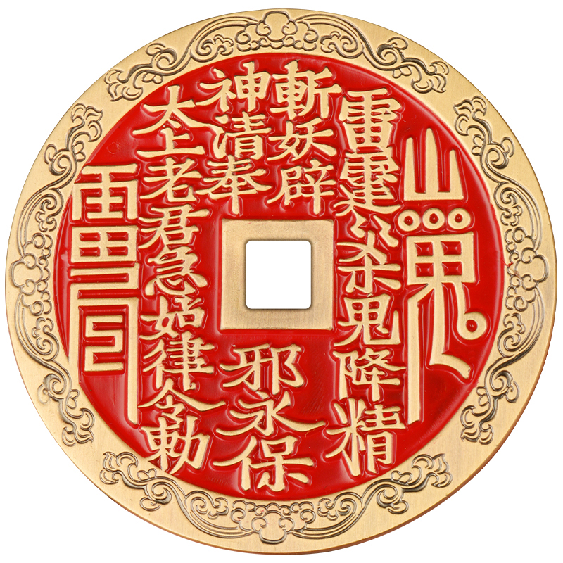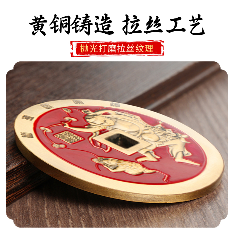 纯黄铜山鬼花钱铜钱币精铸吊坠中西古风风水摆件宝相花纹雕刻收藏