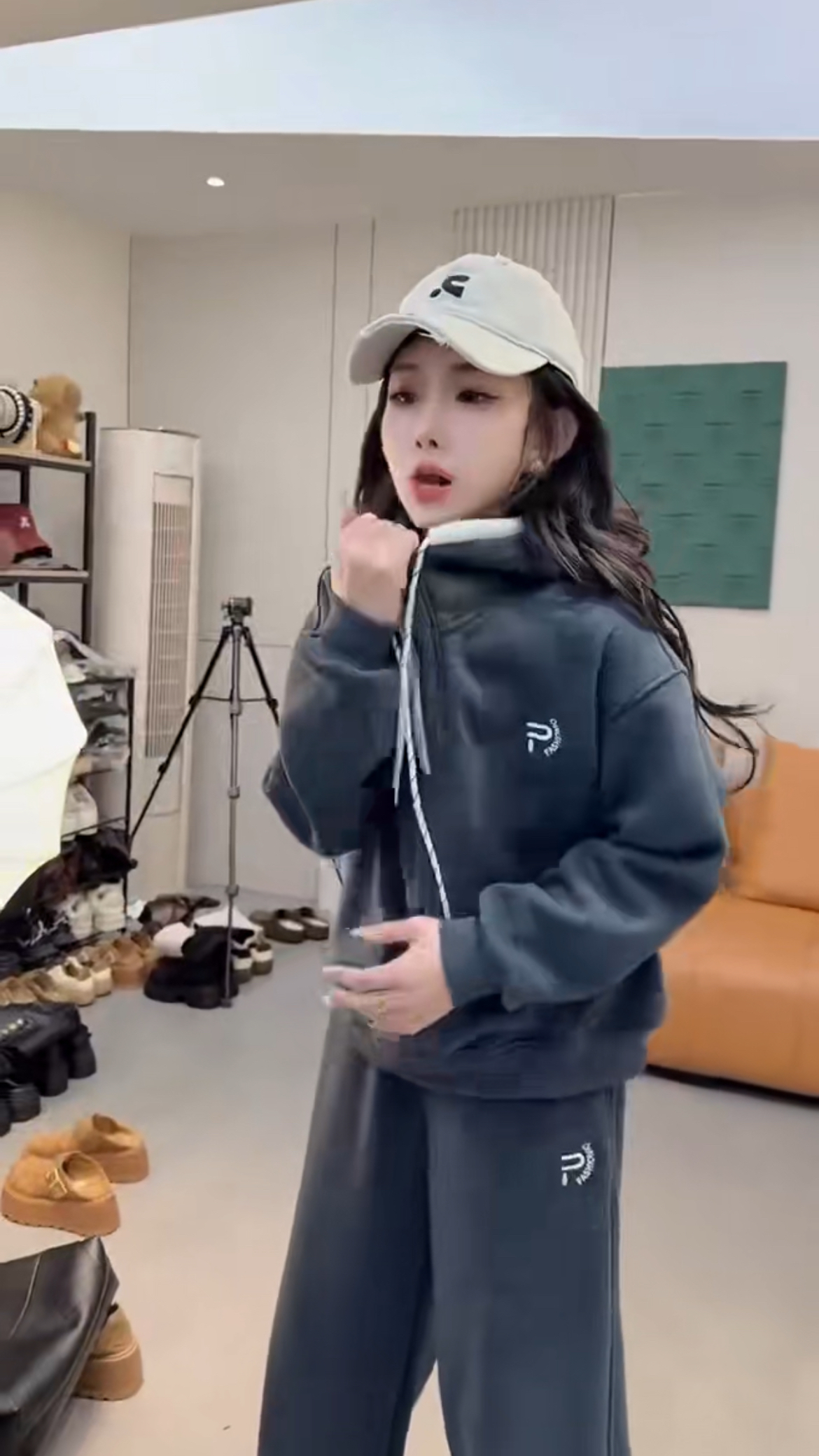 欧货灰色运动套装女春秋2025新款时尚洋气高级感连帽卫衣两件套潮