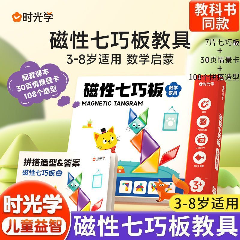 时光学磁性七巧板智力拼图幼儿园2-3岁宝宝小学生益智磁力玩具