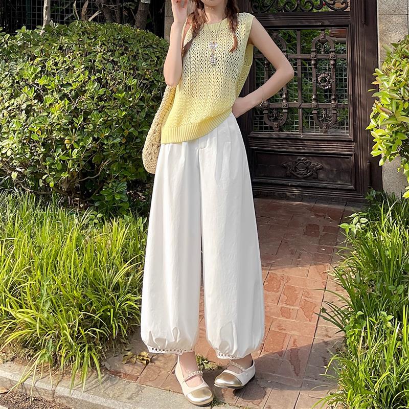 白色冰丝灯笼裤女夏2025新款高腰宽松气球哈伦裤九分凉凉阔腿裤子