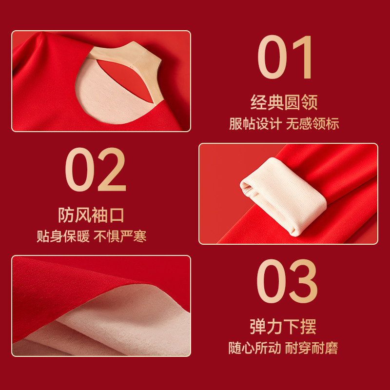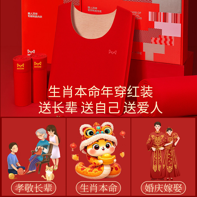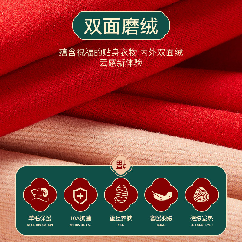猫人德绒发热马年本命年保暖内衣男士结婚大红色秋衣裤女套装礼盒