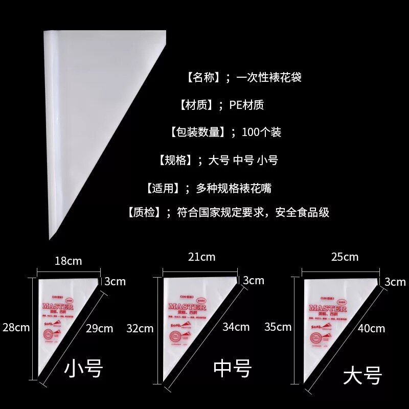 烘焙模具蛋糕用奶油一次性薄裱花袋曲奇挤花100只装加厚小中大号
