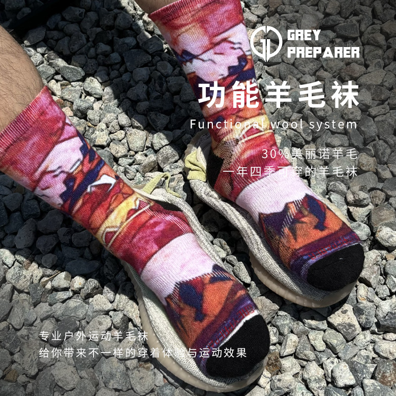 灰壳户外跑步登山袜羽毛球美利奴羊毛徒步减震速干越野运动徒步袜