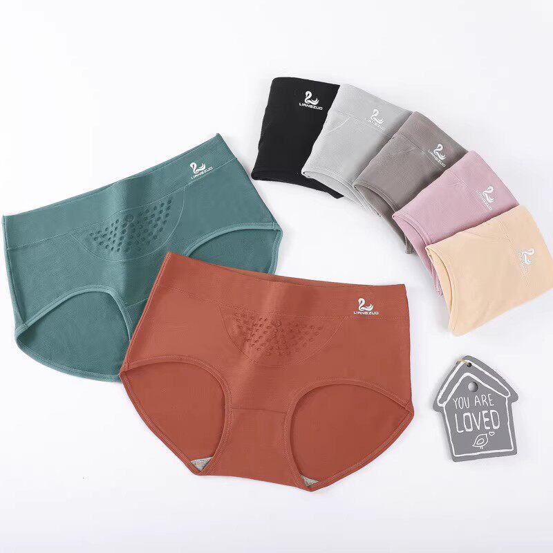 日系蜂巢暖宫内裤女收腹提臀中腰三角裤100%纯棉裆大码女胖mm成人