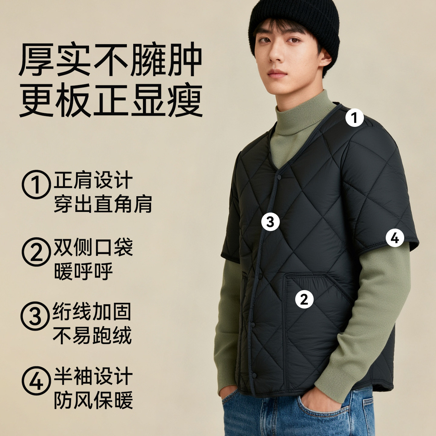 羽绒半袖马甲男款秋冬保暖棉衣
