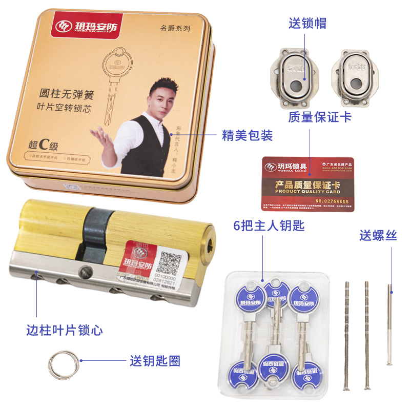 玥玛防盗门锁芯超C级防盗门锁纯铜叶片大门锁芯名爵叶片空转锁芯